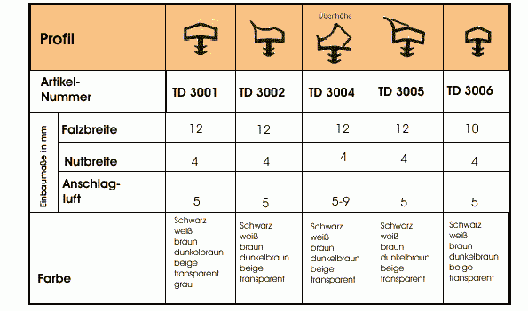 Abgebildete Dichtungen sind bereits ab 5 m lieferbar.
